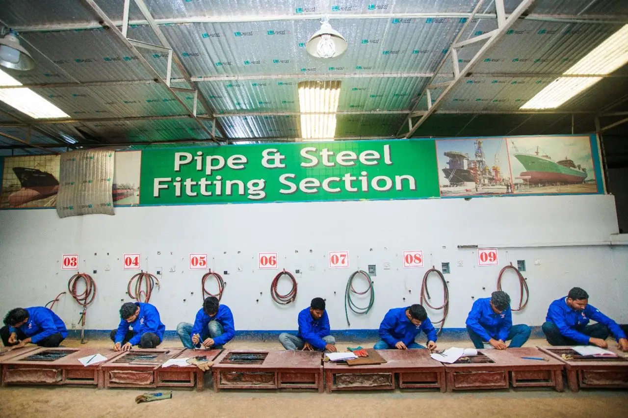 , located in Dhaka, Bangladesh, is dedicated to providing world-class vocational training, with a special focus on Marine Trades. The center is fully equipped with modern facilities and ample training space to ensure a practical learning environment. Each course is carefully designed to meet both national and international labor market standards. With highly qualified and experienced instructors, the center offers specialized training in trades such as Steel Fitting, Pipe Fitting, Mechanical Fitting, Welding (3G/4G/MIG/6G/6G-R/TIG), Electrical Work, and Scaffolding.